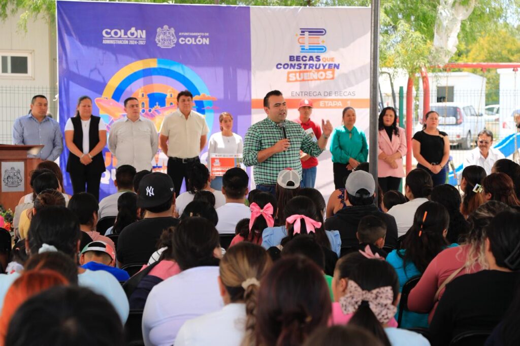 El Presidente Municipal de Colón, Gaspar Trueba Moncada, destacó la importancia de la educación como el camino al éxito durante la ceremonia de entrega de becas a estudiantes de niveles de educación básica, bachillerato y profesional.